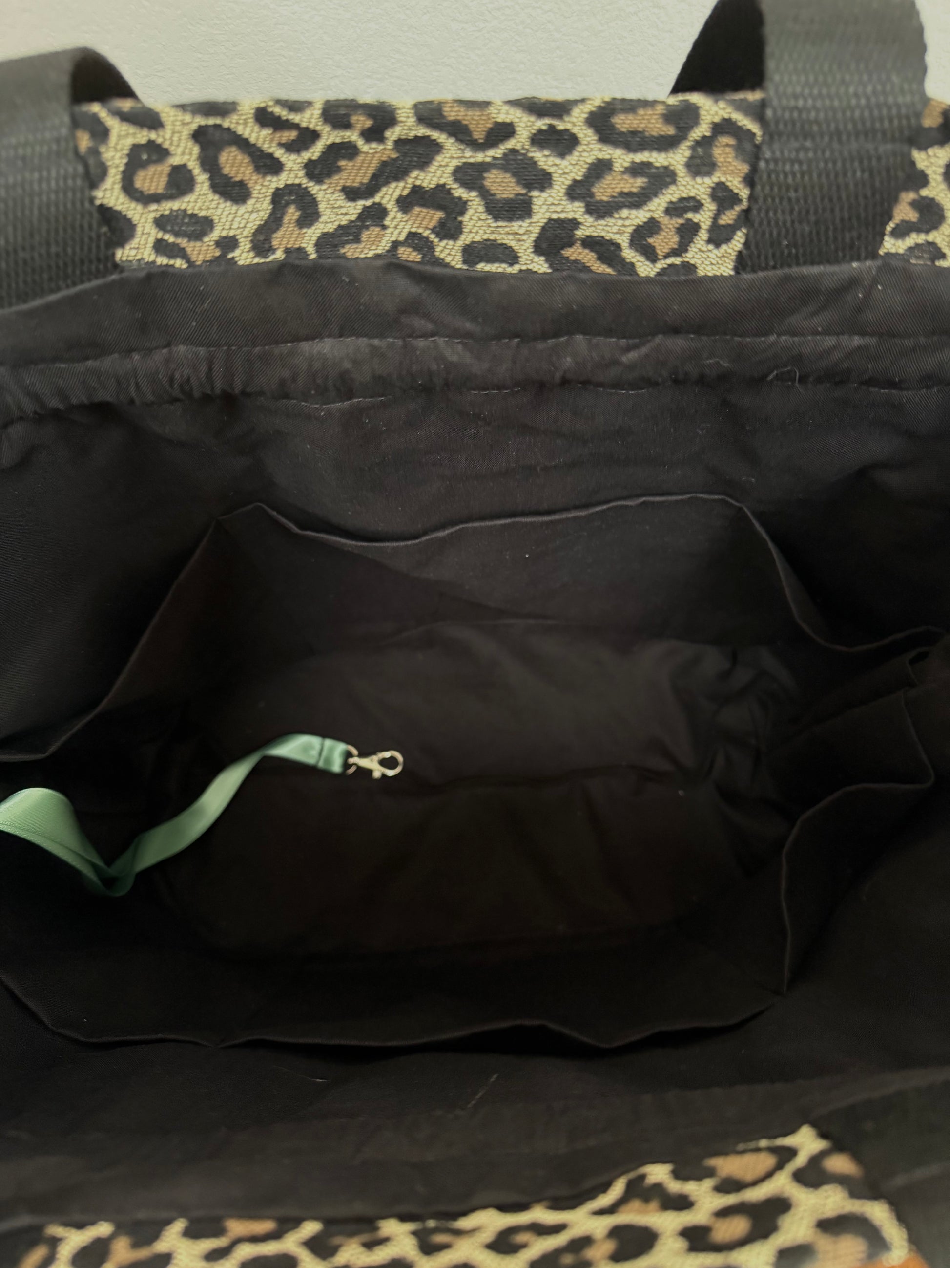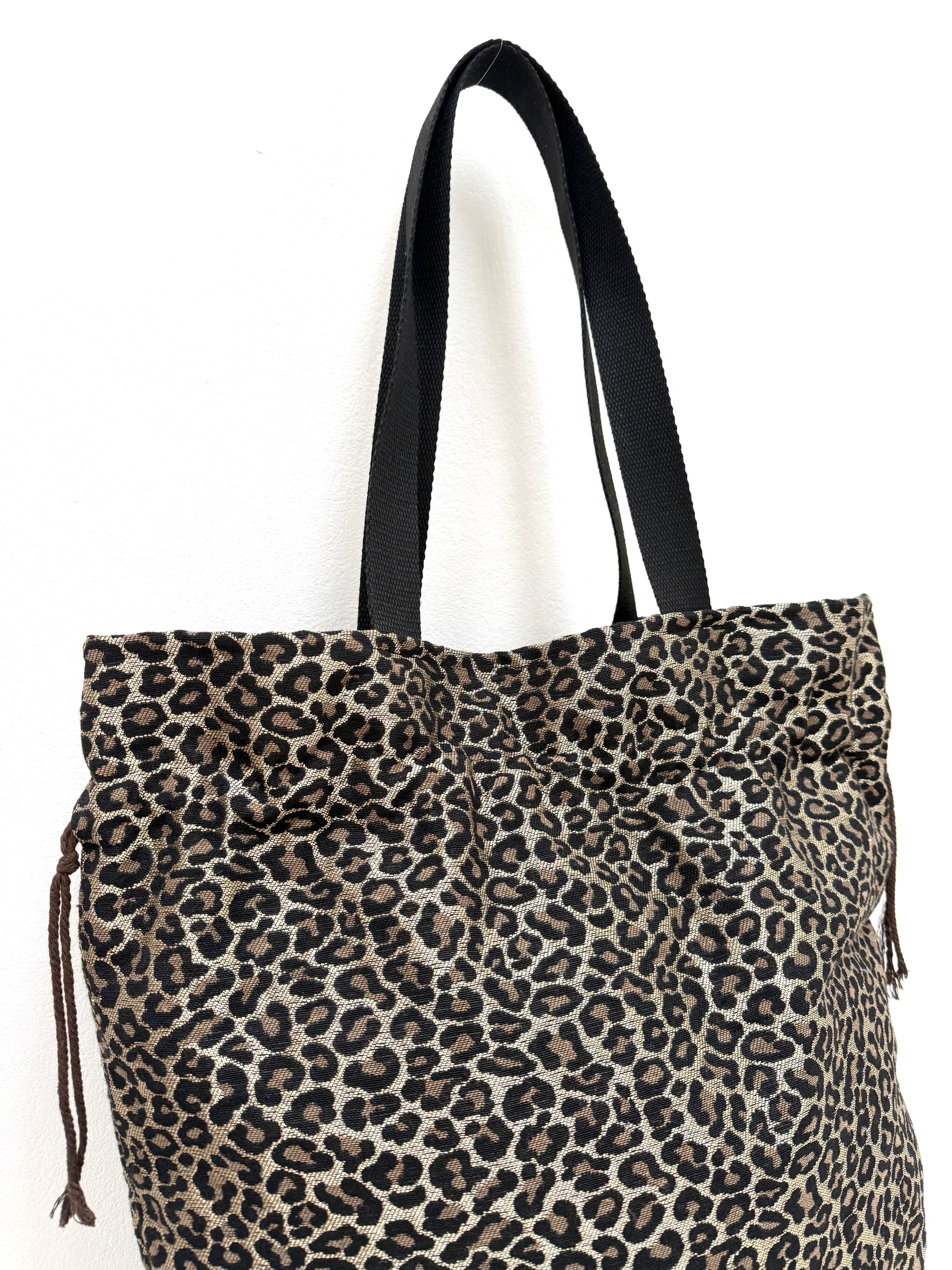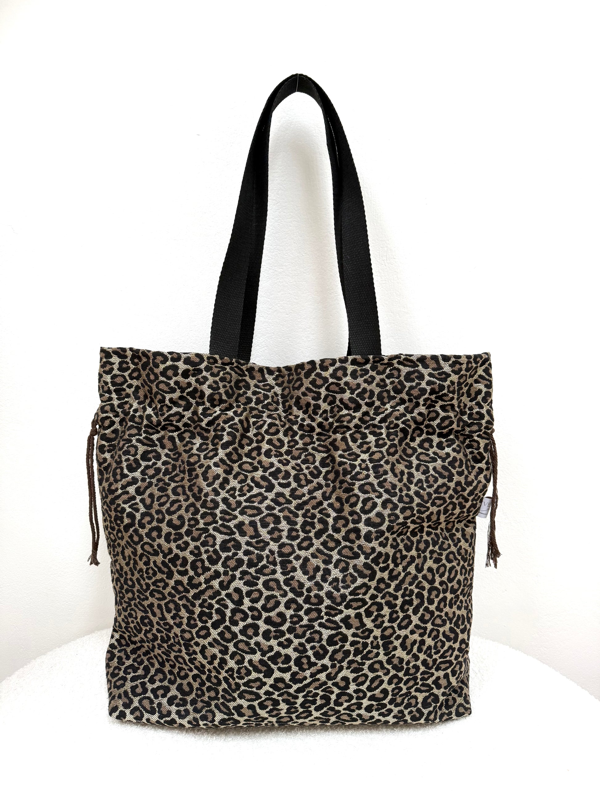 Material: Hochwertiger, robuster Stoff im Leomuster, der Untergrund schimmert goldfarben, Innenfutter Baumwollstoff