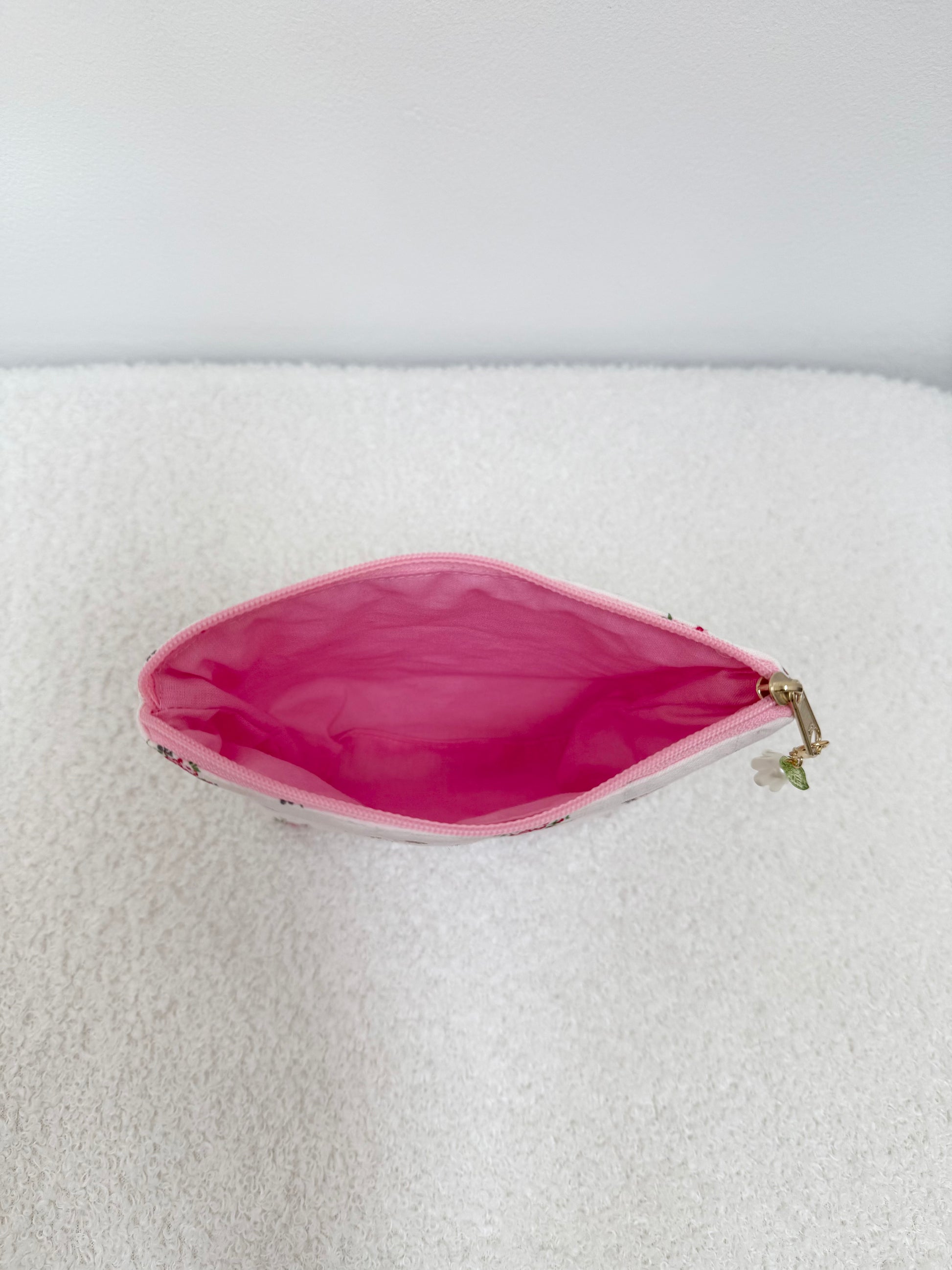 Die Tasche „Flowers“ ist ein liebevoll handgefertigtes Stofftäschchen mit Blumenmuster, das vielseitig einsetzbar ist – ob als Kosmetiktasche, Organizer in der Handtasche, kleines Reisetäschchen oder stilvolles Aufbewahrungstäschchen für Kleinkram. Das romantische Design mit floralen Elementen macht sie zu einem praktischen und zugleich schönen Alltagsbegleiter.