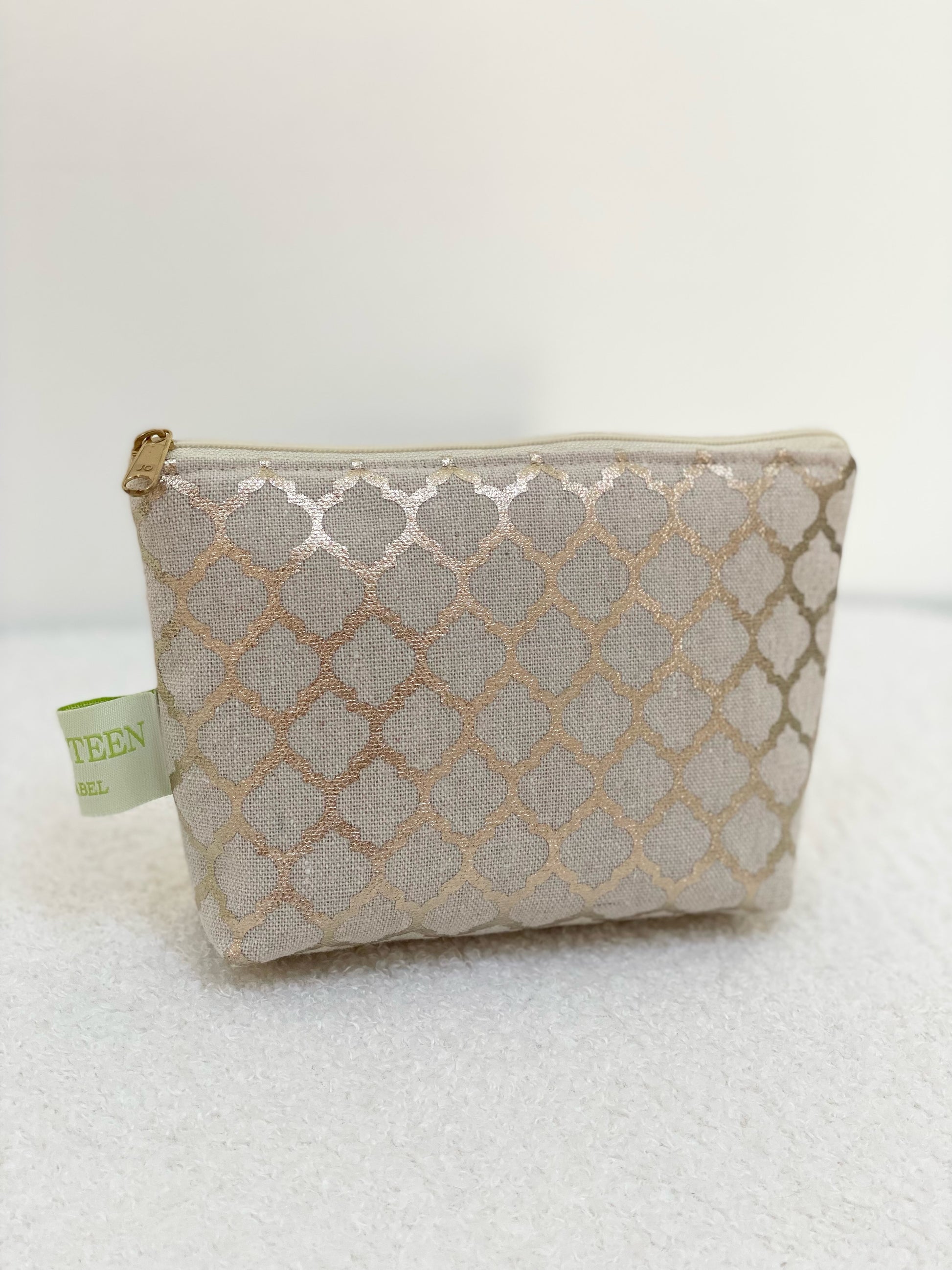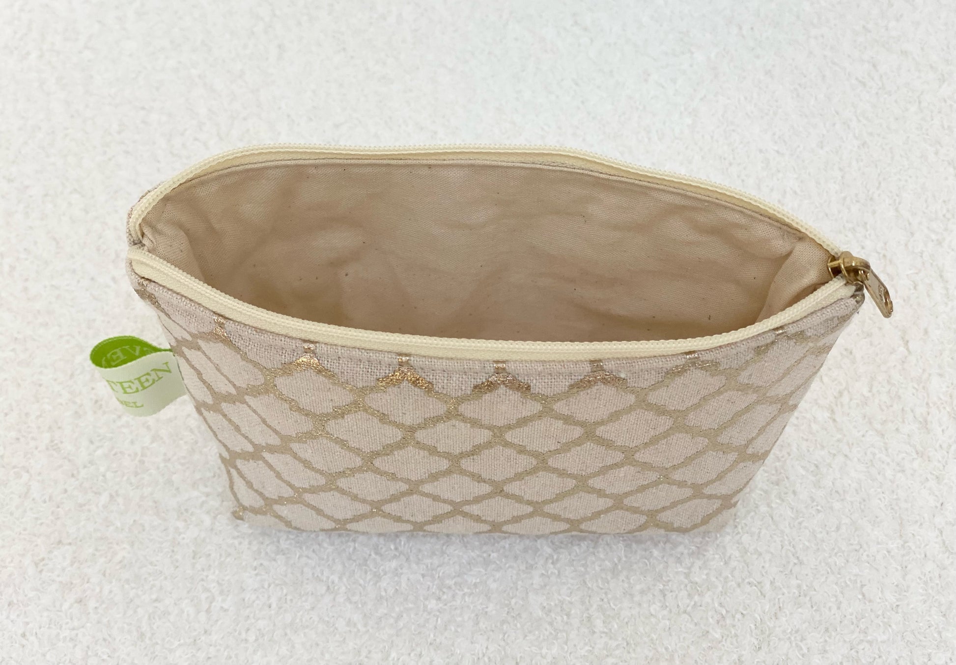 Material: Hochwertiger Baumwoll-/ Leinenstoff mit goldenem Design außen, Innenfutter aus dünnerem Baumwollstoff