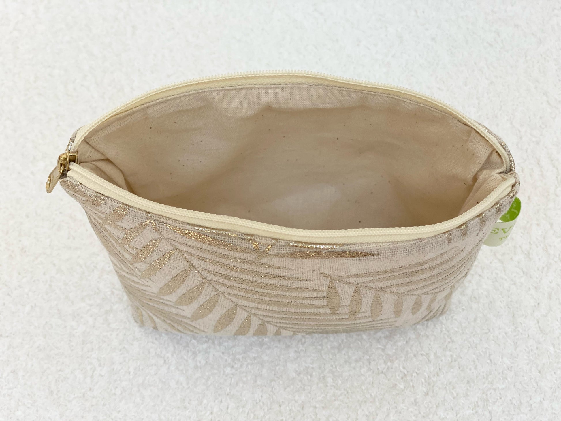 Material: Hochwertiger Baumwoll-/ Leinenstoff mit goldenem Sommerdesign außen, Innenfutter aus dünnerem Baumwollstoff
