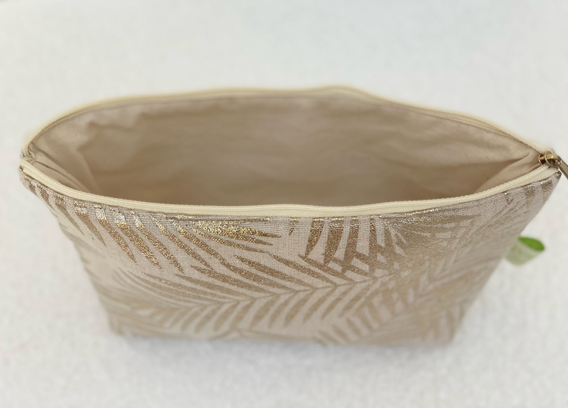Material: Hochwertiger Baumwoll-/ Leinenstoff mit goldenem Sommerdesign außen, Innenfutter aus dünnerem Baumwollstoff