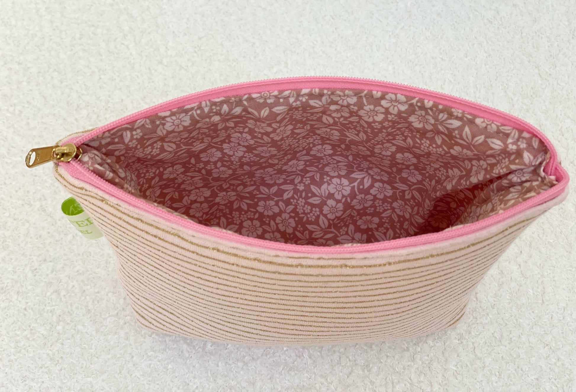 Material: Hochwertiger Baumwollstoff mit Glitzerstreifen außen, Innenfutter aus dünnerem Baumwollstoff im Blumenmuster